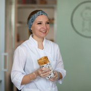 Блин-цезарь с курицей, помидором и сыром, блин-жюльен с курицей и грибами в сливках, а также блин-бекон, блин-ферма, блин-мастер, блин мясной — и это далеко не весь список сытных блинов, которые предлагает посетителям Марина Макарикова. А ещё есть не менее заманчивое меню со сладкими начинками: шоколад, банан, творог, джем, сгущённое молоко, сметана или карамель.