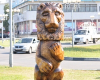 Новая достопримечательность, которая по замыслу авторов должна стать одним из символов города, украсила проезжую часть на пересечении улицы Победы и проспекта Ватутина. Вырезанная из цельного тополя и покрытая лаком скульптура поражает своими размерами: высота 2, 5 метра, в диаметре - метр, а весит деревянный лев около тонны.